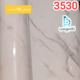 برچسب کابینت طرح سنگ هایگلاس کد 3530 سفید رگه طوسی عرض 90 سانت