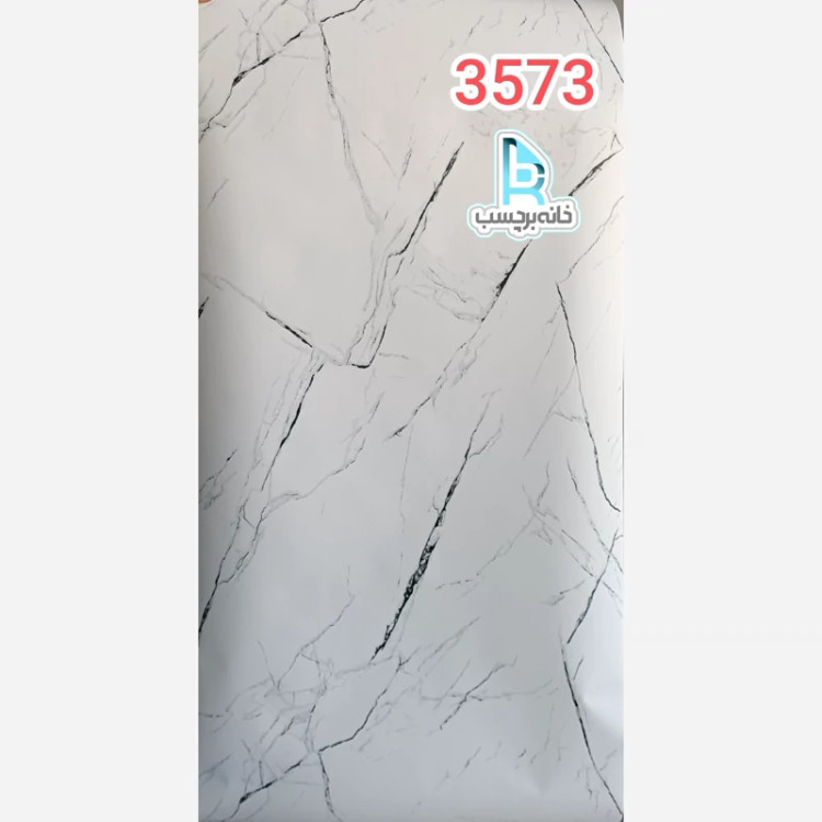 برچسب کابینت طرح سنگ مات کد 3573 سفید با رگه های مشکی