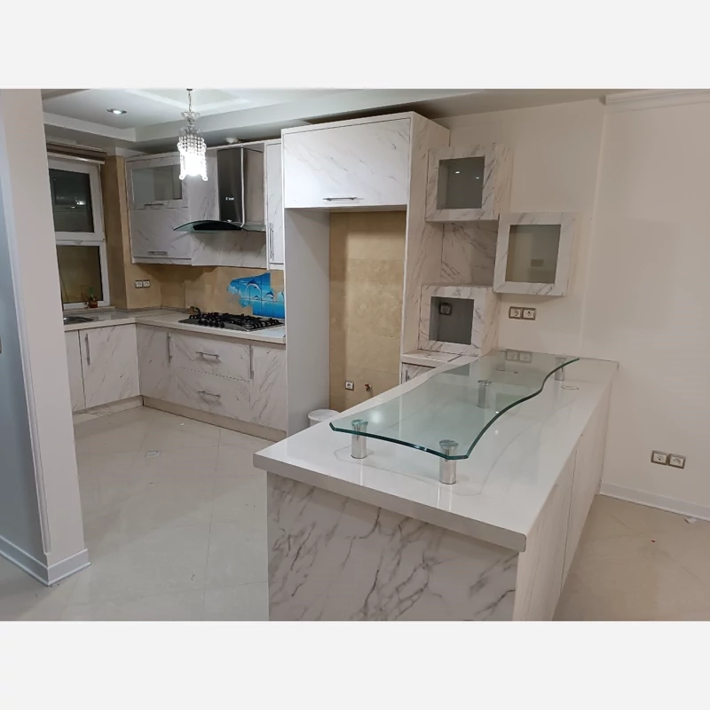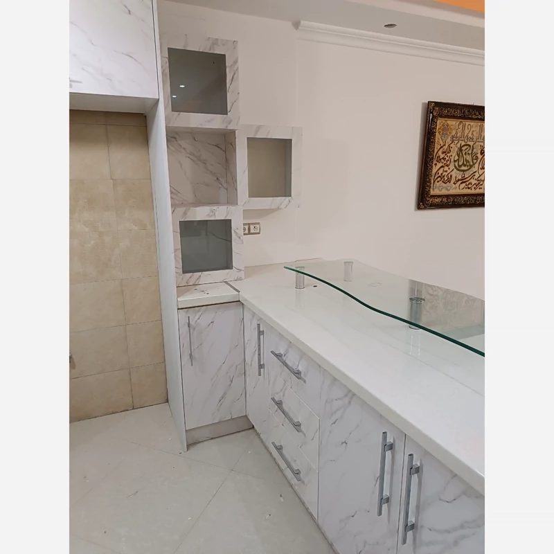 برچسب کابینت طرح سنگ مات کد 3546 سفید رگه طوسی عرض 90 سانت