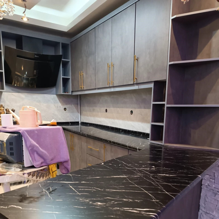 برچسب کابینت کد 4513 طرح بتن پتینه ای طوسی پررنگ خلوت برجسته